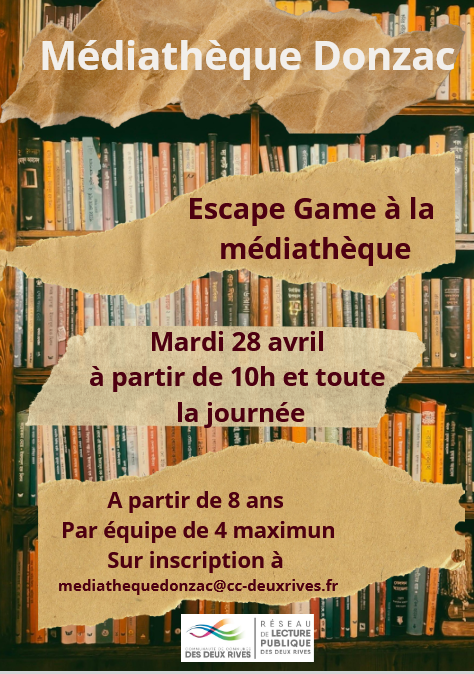 ESCAPE GAME MÉDIATHÈQUE + Ajouter à mon Agenda Google + iCal / Outlook export 00 jours 00 heures 00 minutes 00 secondes Contact Mairie de Donzac [clear] 2, rue Saint-barthélémy [clear] 82340 DONZAC [clear] France [clear] Téléphone : +33 5 63 39 91 84 Télécopie : +33 5 63 39 83 90 [clear] Mail : contact@donzac.fr