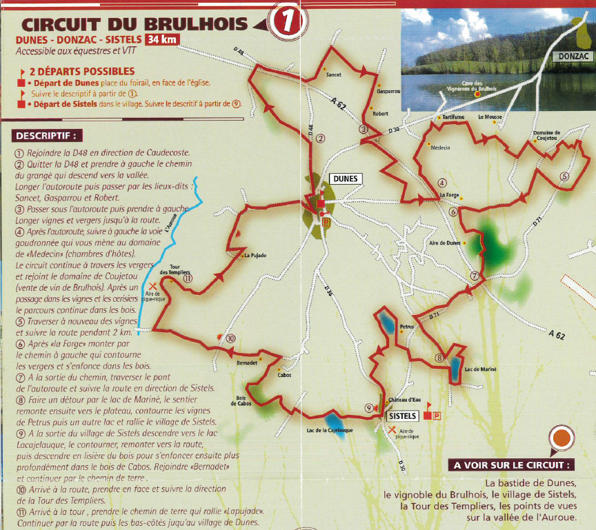 - Le Circuit du Brulhois, Dunes-Donzac-Sistels 34 kms